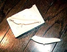 ウエイトの位置を探すためウエイトなしのブランク(ルアーボディ)をキャストで製作します。 このブランクを使いベストなウエイトの位置と重さを見つけ出します。 |