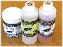 従来のシリコン(シリコン2001)に比べ、硬さ、引張強度、伸びのスペックが約2倍に向上しています。 キャスト成型ルアーの量産化を目的としたマスター型の製作にぜひお試しください。 プロ用シリコンについての詳しい説明は、新着情報をご覧下さい。 鉛鋳造用 耐熱シリコン新発売!!今回、耐熱性に優れた耐熱シリコンの開発が完了しました。 従来のシリコン2001に比べ、粘度は若干高めですが、 耐熱/耐久性は各段に向上しています。 ぜひ、お試しください。 |