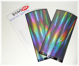 新商品情報!! 来画オリジナル ホログラムシール発表!! ウロコパターンのホログラム転写シールです。 このホロシールは、ウロコパターンにカッテイングされたホログラムシールで、転写シールとなっていますので、簡単に正確にウロコパターンのホログラムをルアーに転写できます。 シールは10cm×20cmの大きさでメタルJIgから小型のルアーに対応。シートの上部から下部になるにしたがってウロコの大きさが徐々に小さくなるようにデザインされていまして、部分的にカットすれば色々な大きさのウロコパターンを自由にチョイスできる仕様となっています。 製品の特徴●ウロコの形を再現 大きいウロコの形から小さなウロコの形へ変化するので実際の魚のようなウロコ模様が出来ます。更に使う場所を選ぶ事で、大小色々なルアーに対応します。 ●カーブでも貼り付けられます ウロコが1枚ずつカットしてあるので曲線でもしわにならずに、簡単に貼ることが出来ます。 ●簡単に左右対称に貼り付けられます 転写シート(クリアーフイルム)に均等に並んでいますので横方向に同じ位置で切り出せば、簡単に左右対称に転写することが可能です。 使用方法転写型ホログラムシールです。下記の要領にしたがってご使用ください。 1.貼り付ける面の油や汚れをきれいに落としてください。 2.ルアーのサイズにあわせてシ−ルをカットします。 3.表面のクリアーシートごとホログラムを貼り付けてください。 好みの場所にシールを慎重に置き、その後クリアシールの上から押し付けて貼り付けします。 4.最後にホログラムが張り付いているのを確認しながら表面のクリアーシートを慎重にはがしてください。 ご使用上の注意 ルアーキャストシリーズ(ルアーキャスト04〜07)は、2010年8月より原材料の配合変更により改良版へとバージョンアップしました。 基本的性能はそのままに、従来品のクオリティを基準に更にキメの細かい表面の形成が可能となっており、成型品の仕上がりの更なる均一化が可能となっております。