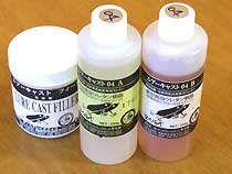 「ウレタンソフトトップコート」は、完全硬化後でも若干の柔軟性を保持する「ソフトタイプ」の2液性ウレタンです。 この樹脂は、プロユースのメタルJIG用のTOPコートとして開発されました。密着性が良く衝撃吸収性が高いので、従来の樹脂に比べ「割れ、剥がれ」等を起こし難く、高い強度を誇ります。 透明性が高く、このタイプの樹脂にありがちな柔軟性樹脂ゆえの「ベタ付き感」も大幅に改善されています。 硬化後の硬さは、感覚的に表現すると「爪先で抑えたときに若干たわむ程度」。爪の跡は残らない感じです。この柔軟性が衝撃を吸収することで、メタルJIGに起こりがちなフックとの接触、、ぶつけ等による「塗膜の欠落」を高いレベルで防ぎ、きれいな塗膜を保持するのです。 ○ウレタンソフトトップコート 主剤350ml 硬化剤35ml セット (混合比は、主剤10:硬化剤1 です。) 3、360円 ○ソフトトップコート専用薄め液 1000ml 1050円 ※(必す専用の薄め液をご使用ください。) 新 商品発売!!ルアーキャスト07 発売開始!! 以前から問い合わせの多かったルアーキャストの07比重を今回発売する事になりました。 この07は、ルアーキャストシリーズ中最も浮力を抑えたモデルで、ハードウッド(硬材)のイメージを再現した樹脂です。 強度を必要とするルアーの製作に是非お役立てください。 来画 DVD 「型取り技術で作る ハンドメイドルアーとメタルJIG」 vol1 リリース!!。 来画公式型取り技術解説DVDがリリースの運びとなりました。今回のDVDは、シリコーンを使った型取り技術の基本的方法を解説し、合わせて「ルアーキャストを使ったハンドメイドルアー製作「と、「耐熱シリコーンと、硬質鉛を使ったメタルJIG製作」の基本的製作法を詳しく解説しています。 文章ではわかり難い部分を動画にて解説していますので、初めての方に特にお勧めです。 内容 ●シリコーンによる型取りテクニックの基礎から中級テクニックまでを解説 ●ルアーキャストを使った製作技術とルアー量産のテクニックを解説 ●硬質鉛の鋳造法を使ったメタルJIG製作の基本技術を解説 DVD/ビデオ 1時間13分 2980円(税込み) 新発売!!ルアーキャスト 04、05、06 2005年 来画ルアーキャストシリーズ(ヒノキ、バルサ、ハイフロートの3アイテム)が更なる進化を遂げ、04(0.4比重) 05(0.5比重) 06(0.6比重)の3アイテムへとリニューアルされることが決定しました。 新しいルアーキャストは、ビルダーの感性をより高い次元でアシストする為の「高水準の安定性」と、「使いやすさ」に徹底的に拘り、製品のクオリティと生産効率の向上を目標にさらに使いやすい素材へと進化しました。 ルアーキャストNEWラインナップ 従来の木材タイプの表記を改め 浮力(比重)を具体的に表記する方法に変更しました。 ルアーキャスト04 =約0.4比重(水を1.0として換算)のモデル。最も浮力の高いキャストです。 ルアーキャスト05 =約0.5比重(水を1.0として換算)のモデル。以前のハイフロートに近いモデルです。 ルアーキャスト06 =約0.6比重(水を1.0として換算)のモデル。以前のバルサに近いモデルです。 使用方法は、以前のルアーキャストと基本的には変わりません。価格も、据え置きとなっています。